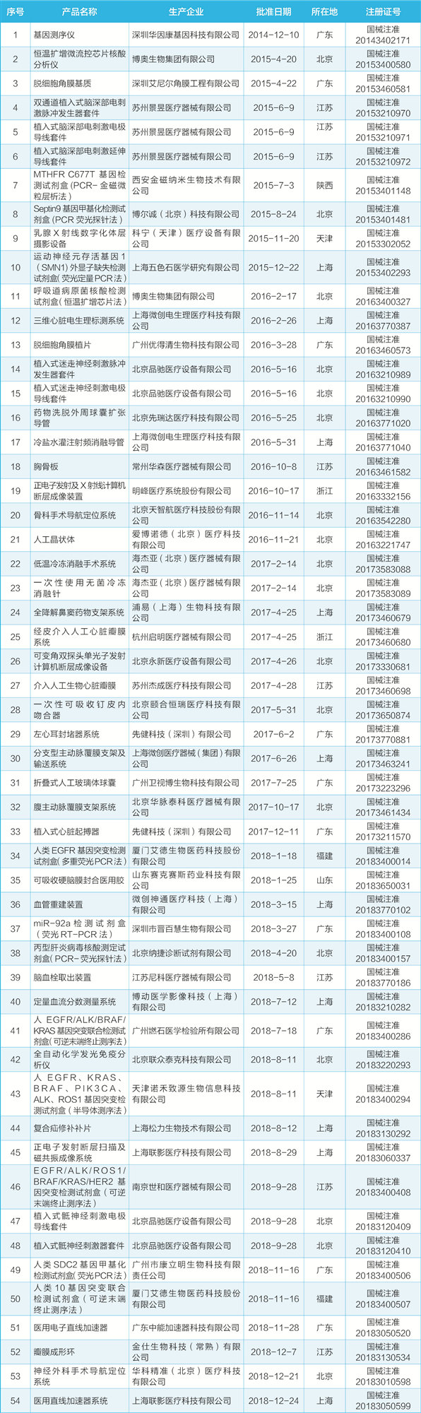 神經(jīng)外科手術(shù)導(dǎo)航定位系統(tǒng)、正電子發(fā)射斷層掃描及磁共振成像系統(tǒng)……2018年,國家藥品監(jiān)管部門批準(zhǔn)了21個創(chuàng)新性強(qiáng)、技術(shù)含量高、臨床需求迫切的創(chuàng)新產(chǎn)品上市,填補(bǔ)了相關(guān)領(lǐng)域的空白,更好的滿足了人民群眾的健康需求。 審批時間縮短83天 近年來,國家藥品監(jiān)管局貫徹落實(shí)《國務(wù)院關(guān)于改革藥品醫(yī)療器械審評審批制度的意見》和中辦國辦《關(guān)于深化審評審批制度改革鼓勵藥品醫(yī)療器械創(chuàng)新的意見》深入推進(jìn)醫(yī)療器械審評審批制度改革,加速醫(yī)療器械創(chuàng)新發(fā)展。自2014年2月《創(chuàng)新醫(yī)療器械特別審批程序》發(fā)布以來,截至2018年12月31日,已有197個產(chǎn)品進(jìn)入創(chuàng)新醫(yī)療器械特別審查通道, 54個創(chuàng)新產(chǎn)品獲批上市。創(chuàng)新產(chǎn)品的審評審批時間較其他普通三類首次注冊產(chǎn)品平均縮短83天,加快了創(chuàng)新產(chǎn)品的上市步伐。 從批準(zhǔn)產(chǎn)品所在地來看,產(chǎn)業(yè)大省創(chuàng)新醫(yī)療器械數(shù)量排名靠前,分別是北京18個、廣東10個、上海10個、江蘇8個。從批準(zhǔn)產(chǎn)品的類型來看,體外診斷試劑13個,診斷類設(shè)備9個,植入類醫(yī)療器械22個。 首創(chuàng)產(chǎn)品優(yōu)勢顯著 無源植入類醫(yī)療器械中,值得一提的是折疊式人工玻璃體球囊。該產(chǎn)品由球囊、引流管和引流閥組成,由醫(yī)用硅橡膠材料制成,適用于嚴(yán)重視網(wǎng)膜脫離,不能用現(xiàn)有的玻璃體替代物進(jìn)行治療的患者。該產(chǎn)品是我國獨(dú)立研制的創(chuàng)新產(chǎn)品,屬于國際首創(chuàng)。該產(chǎn)品可長期填充在眼內(nèi),解決了玻璃體替代物不能長期停留在眼內(nèi)、不能長期頂壓視網(wǎng)膜或需反復(fù)手術(shù)等問題,避免患者眼球摘除和植入義眼座。 有源植入產(chǎn)品中"植入式迷走神經(jīng)刺激脈沖發(fā)生器套件"和"植入式迷走神經(jīng)刺激電極導(dǎo)線套件"兩個組合使用產(chǎn)品是迷走神經(jīng)刺激治療癲癇病的首例國產(chǎn)產(chǎn)品。"植入式迷走神經(jīng)刺激脈沖發(fā)生器套件"由脈沖發(fā)生器、測試電阻、力矩螺絲刀和控制磁鐵組成。"植入式迷走神經(jīng)刺激電極導(dǎo)線套件"由電極、造隧道工具(包括穿刺工具和套管)和固定夾組成。上述兩個產(chǎn)品配合使用,對藥物不能有效控制的難治性癲癇患者能起到控制癲癇發(fā)作的作用。 診斷類產(chǎn)品中"正電子發(fā)射斷層掃描及磁共振成像系統(tǒng)" 相比其他成像方式具有顯著優(yōu)勢。該產(chǎn)品包括PET(正電子發(fā)射斷層掃描)及MR(磁共振)兩部分,實(shí)現(xiàn)了PET成像及MR成像的一體化結(jié)合,可實(shí)現(xiàn)同步且等中心采集生理、解剖和生化代謝信息,并將這些信息配準(zhǔn)和融合。PET/MR成像集合了PET和MR兩種成像模式的優(yōu)勢,具有多模態(tài),多對比度,高分辨率,高靈敏度和低輻射劑量等優(yōu)點(diǎn)。臨床實(shí)踐已經(jīng)證明了其在頭頸部腫瘤、腹部腫瘤、退行性神經(jīng)病變、全身淋巴瘤等疾病診斷中的明確作用。 治療設(shè)備中骨科手術(shù)導(dǎo)航定位系統(tǒng)采用6自由度機(jī)械臂、兼容2D和3D醫(yī)學(xué)影像等專利技術(shù),各項(xiàng)性能指標(biāo)達(dá)到國際同類產(chǎn)品水平。該系統(tǒng)由主機(jī)、機(jī)械臂、手術(shù)計劃與控制軟件、光學(xué)跟蹤系統(tǒng)、主控臺車和導(dǎo)航定位工具包組成,用于在脊柱外科和創(chuàng)傷骨科開放或經(jīng)皮手術(shù)中以機(jī)械臂輔助完成手術(shù)器械或植入物的定位。適用于采用創(chuàng)傷骨科空心螺釘內(nèi)固定術(shù)和脊柱螺釘內(nèi)固定術(shù)的患者,可以有效保證螺釘置入的精度,縮短手術(shù)時間,減少X線輻射損傷,減輕患者損傷。 國家藥品監(jiān)管部門批準(zhǔn)創(chuàng)新醫(yī)療器械列表: |