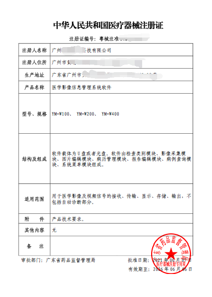 醫(yī)學(xué)影像信息管理系統(tǒng)軟件注冊證